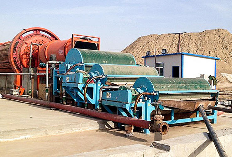 磁選機(jī)與常規(guī)磁選設(shè)備相比,在磁系結(jié)構(gòu)設(shè)計(jì)上增加了高性能的永磁體,保證在大流量條件下磁性質(zhì)不丟失。